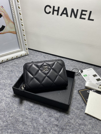 Ch*el flap wallet black silver 19.5 x10 cm